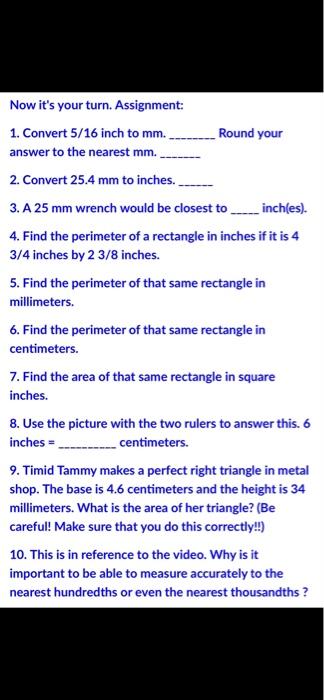 Solved Now It S Your Turn Assignment 1 Convert 5 16 Inch Chegg Com